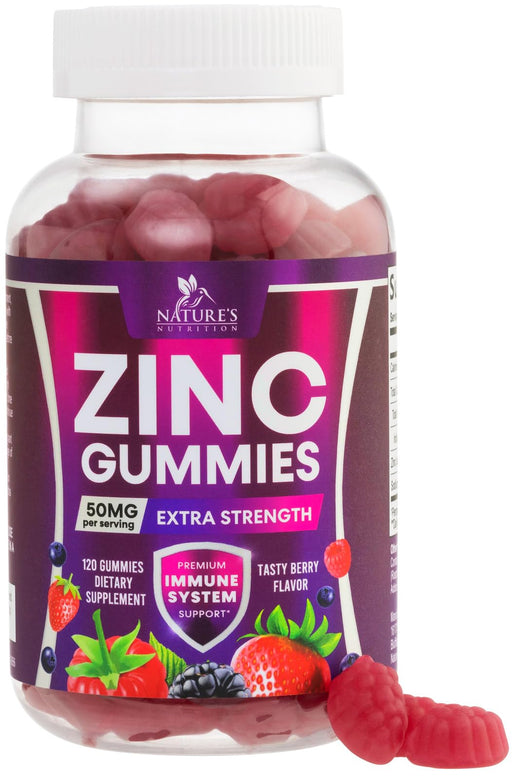 Zinc Gummies 50mg - Bone Skin & Immune Support Health Gummy & Premium Antioxidant Chewable for Adults - High Absorption Vegan, Gluten Free Zinc Supplements Vitamin - Tasty Berry Flavor - 120 Gummies