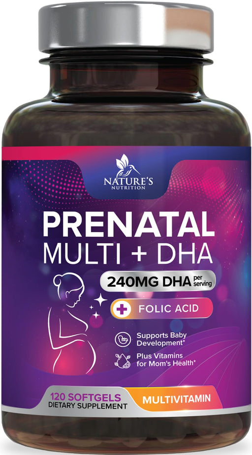 Prenatal Vitamins with Folic Acid & DHA, Fetal Brain Development Support with Folate & Omega 3's, Prenatal Multivitamin for Women, Vitamin A, C, D, B6, B12 & Iron, Pregnancy Supplement - 120 Softgels
