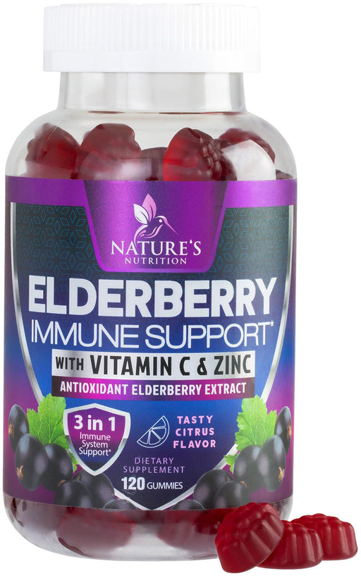 Immune Support Gummies - Sambucus Elderberry Gummy with Elder Berry Extract, Zinc & Vitamin C, Natural Vegan Immune Support Supplement for Adults & Children, Gummy Elderberry Vitamins - 120 Gummies