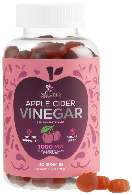 Apple Cider Vinegar Gummies for Weight Loss 1000mg - Vegan Apple Vinegar Gummy for Detox & Cleanse, ACV Supplement Pills, Vitamin B12, Sugar Free ACV Gummy, Non-GMO, Nature's Nutrition - 60 Gummies