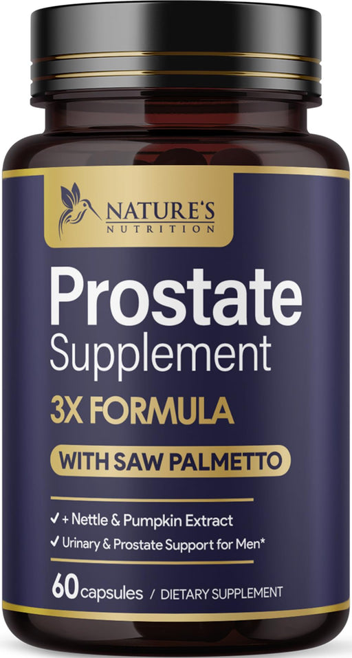 Prostate Health Supplements for Men - Support Complex 3X Formula with Saw Palmetto Blend Stinging Nettle Root & Pumpkin Seed Extract - Supports Bathroom Trips Prostate & Urinary Health - 60 Capsules