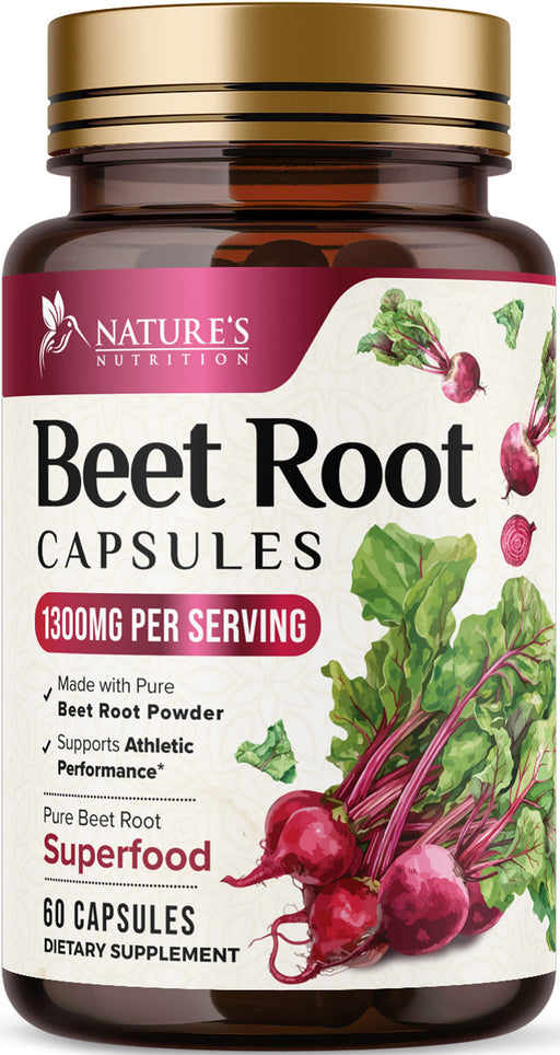 Beet Root Capsules 1300mg - Extra Strength Red Beetroot Powder Supplement – Supports Nitric Oxide Production, Heart Health & Natural Energy – Non-GMO, Vegan, Gluten Free – 60 Veggie Capsules